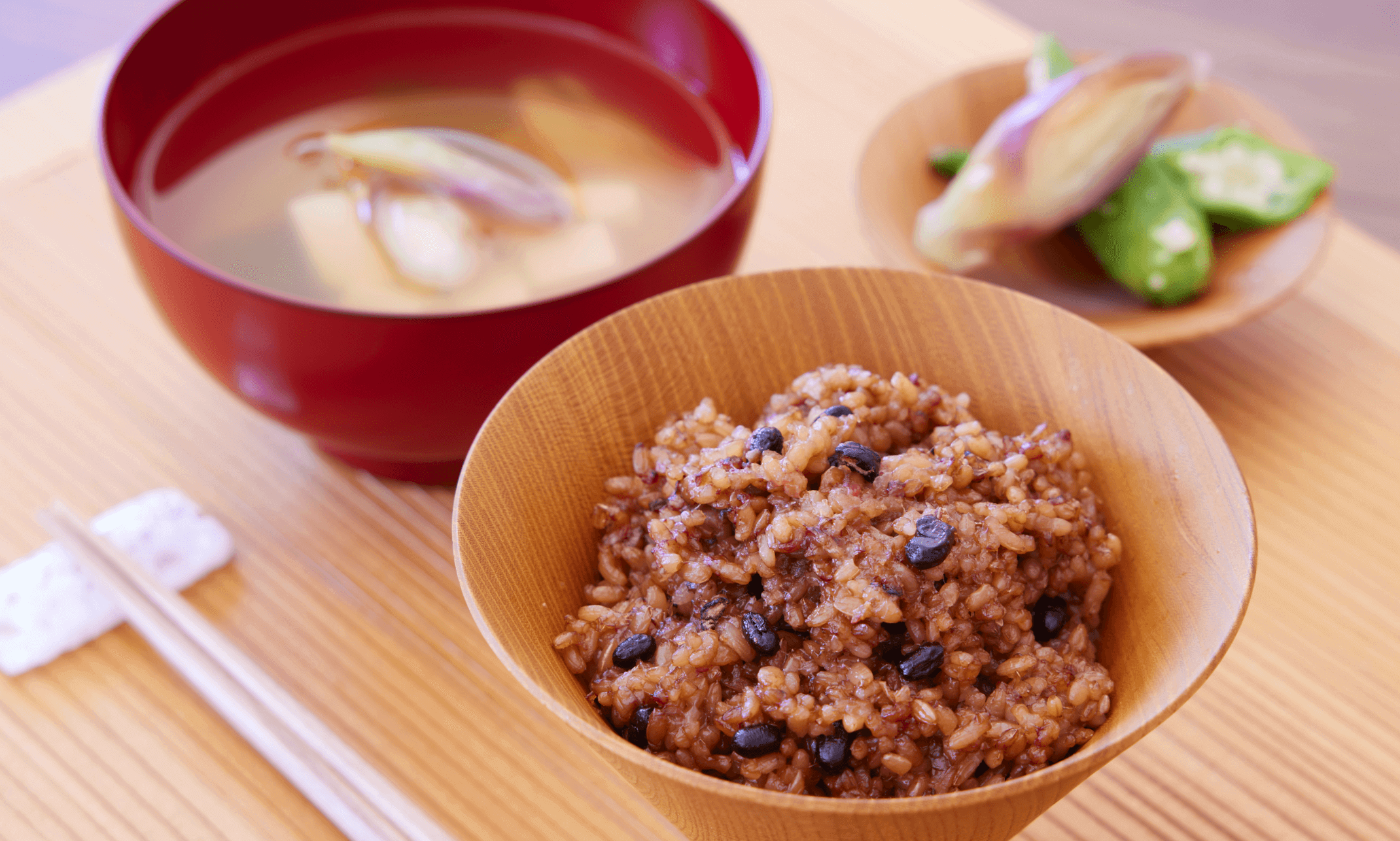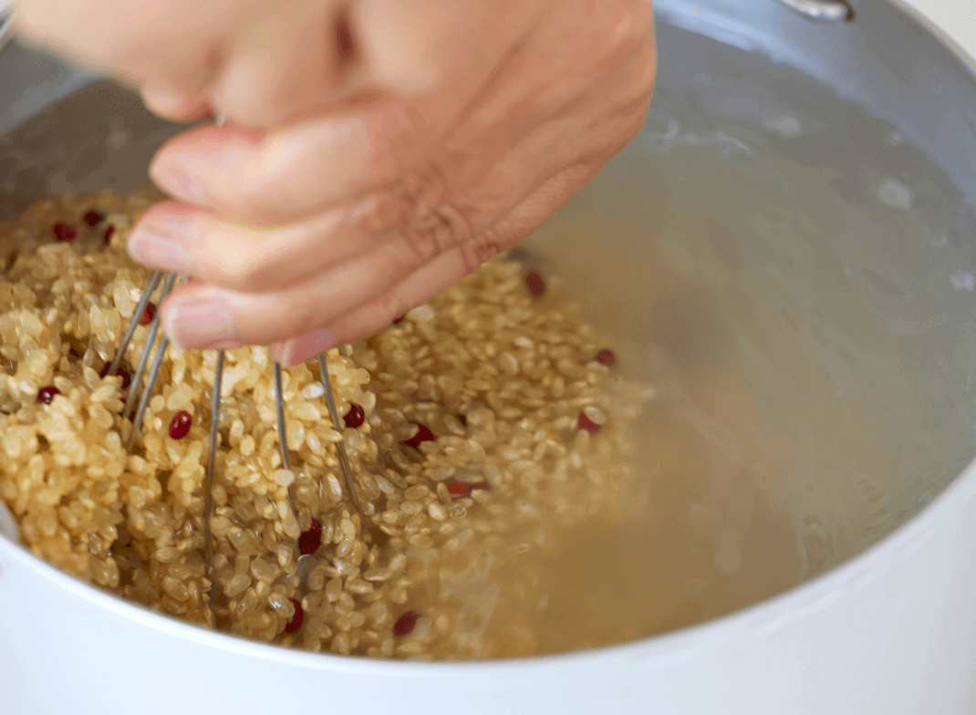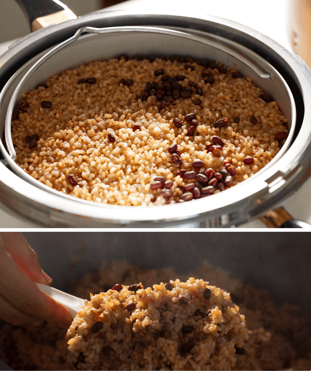 丁寧に炊き上げることで、玄米の糖質と小豆のタンパク質や